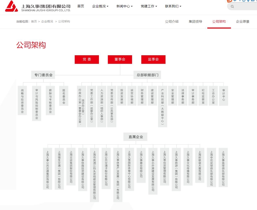久事集团官网显示,该集团已逐步构筑起城市功能保障和投资平台管理并重的多元化、综合性产业格局。集团积极推动城市交通、体育产业、地产置业、资本经营、文旅产业五大主业板块高质量发展。